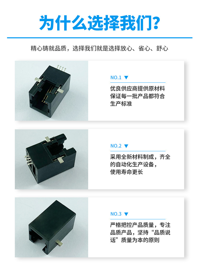 本公司提供優(yōu)良的RJ11、RJ12電話插接件、RJ45網(wǎng)絡(luò)插接件,耐環(huán)境RJ45防水連接器,防水電連接器及其它精密連接器,產(chǎn)品應(yīng)用于網(wǎng)絡(luò)通訊(電腦主板,網(wǎng)絡(luò)交換機(jī),路由器,電信設(shè)備)、惡劣環(huán)境下數(shù)據(jù)傳輸與控制及電源信號(hào)傳輸與控制(戶外LED顯示屏、機(jī)器控制、工業(yè)程序控制等)