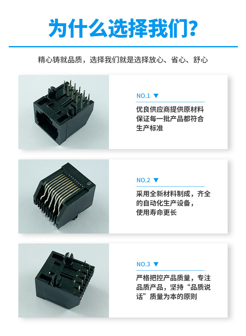 本公司提供優(yōu)良的RJ11、RJ12電話插接件、RJ45網(wǎng)絡(luò)插接件,耐環(huán)境RJ45防水連接器,防水電連接器及其它精密連接器,產(chǎn)品應(yīng)用于網(wǎng)絡(luò)通訊(電腦主板,網(wǎng)絡(luò)交換機(jī),路由器,電信設(shè)備)、惡劣環(huán)境下數(shù)據(jù)傳輸與控制及電源信號(hào)傳輸與控制(戶外LED顯示屏、機(jī)器控制、工業(yè)程序控制等)