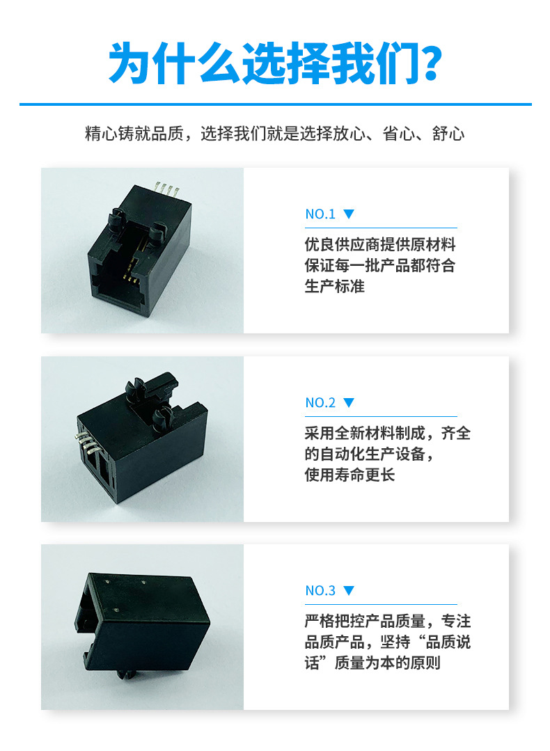 本公司提供優(yōu)良的RJ11、RJ12電話插接件、RJ45網(wǎng)絡(luò)插接件,耐環(huán)境RJ45防水連接器,防水電連接器及其它精密連接器,產(chǎn)品應(yīng)用于網(wǎng)絡(luò)通訊(電腦主板,網(wǎng)絡(luò)交換機(jī),路由器,電信設(shè)備)、惡劣環(huán)境下數(shù)據(jù)傳輸與控制及電源信號傳輸與控制(戶外LED顯示屏、機(jī)器控制、工業(yè)程序控制等)