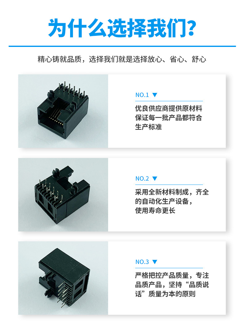 本公司提供優(yōu)良的RJ11、RJ12電話插接件、RJ45網(wǎng)絡(luò)插接件,耐環(huán)境RJ45防水連接器,防水電連接器及其它精密連接器,產(chǎn)品應(yīng)用于網(wǎng)絡(luò)通訊(電腦主板,網(wǎng)絡(luò)交換機(jī),路由器,電信設(shè)備)、惡劣環(huán)境下數(shù)據(jù)傳輸與控制及電源信號(hào)傳輸與控制(戶外LED顯示屏、機(jī)器控制、工業(yè)程序控制等)
