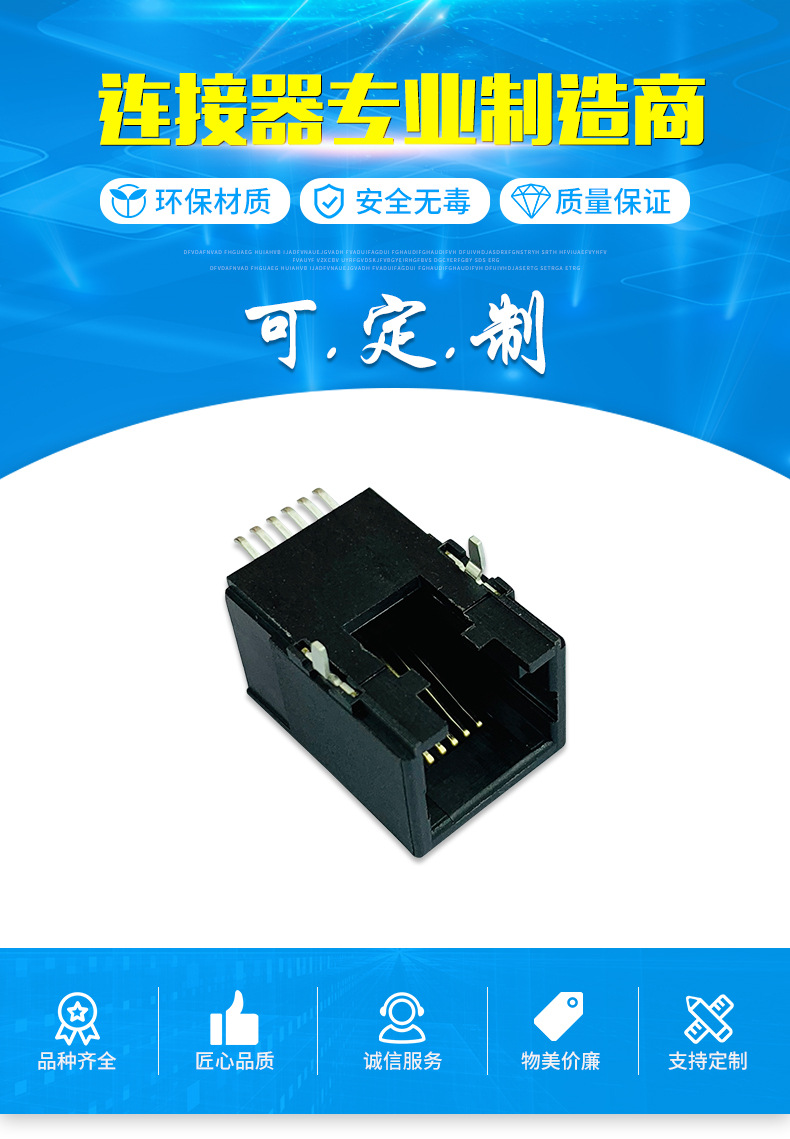 本公司提供優(yōu)良的RJ11、RJ12電話插接件、RJ45網(wǎng)絡(luò)插接件,耐環(huán)境RJ45防水連接器,防水電連接器及其它精密連接器,產(chǎn)品應(yīng)用于網(wǎng)絡(luò)通訊(電腦主板,網(wǎng)絡(luò)交換機(jī),路由器,電信設(shè)備)、惡劣環(huán)境下數(shù)據(jù)傳輸與控制及電源信號(hào)傳輸與控制(戶外LED顯示屏、機(jī)器控制、工業(yè)程序控制等)