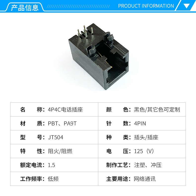 本公司提供優(yōu)良的RJ11、RJ12電話插接件、RJ45網(wǎng)絡(luò)插接件,耐環(huán)境RJ45防水連接器,防水電連接器及其它精密連接器,產(chǎn)品應(yīng)用于網(wǎng)絡(luò)通訊(電腦主板,網(wǎng)絡(luò)交換機(jī),路由器,電信設(shè)備)、惡劣環(huán)境下數(shù)據(jù)傳輸與控制及電源信號(hào)傳輸與控制(戶外LED顯示屏、機(jī)器控制、工業(yè)程序控制等)