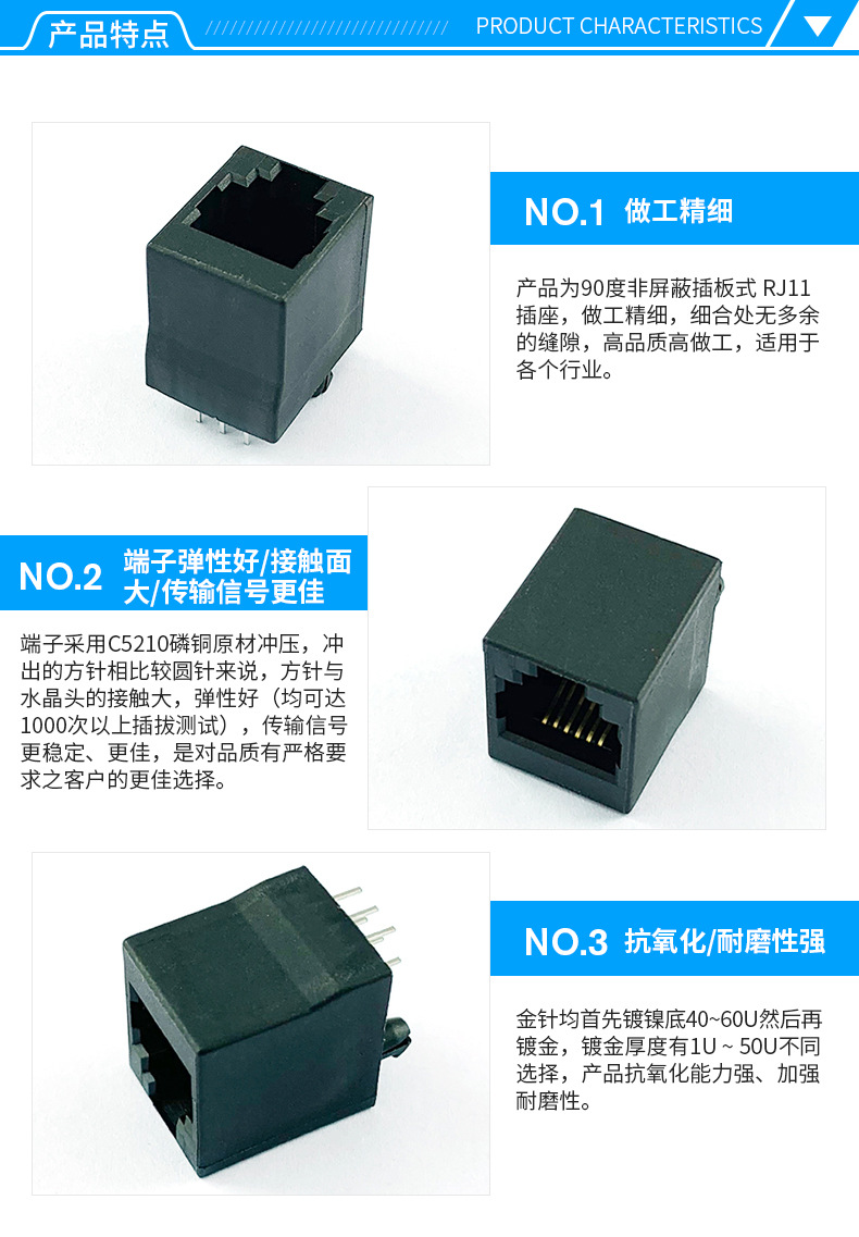 本公司提供優(yōu)良的RJ11、RJ12電話插接件、RJ45網(wǎng)絡(luò)插接件,耐環(huán)境RJ45防水連接器,防水電連接器及其它精密連接器,產(chǎn)品應(yīng)用于網(wǎng)絡(luò)通訊(電腦主板,網(wǎng)絡(luò)交換機(jī),路由器,電信設(shè)備)、惡劣環(huán)境下數(shù)據(jù)傳輸與控制及電源信號(hào)傳輸與控制(戶外LED顯示屏、機(jī)器控制、工業(yè)程序控制等)