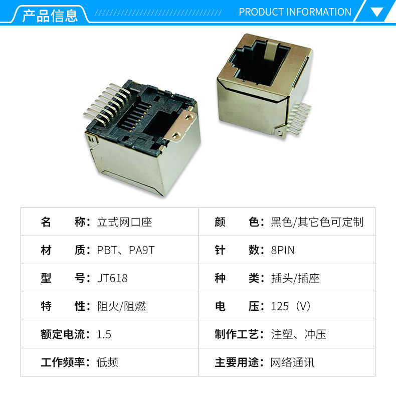 本公司提供優(yōu)良的RJ11、RJ12電話插接件、RJ45網(wǎng)絡插接件,耐環(huán)境RJ45防水連接器,防水電連接器及其它精密連接器,產(chǎn)品應用于網(wǎng)絡通訊(電腦主板,網(wǎng)絡交換機,路由器,電信設備)、惡劣環(huán)境下數(shù)據(jù)傳輸與控制及電源信號傳輸與控制(戶外LED顯示屏、機器控制、工業(yè)程序控制等)