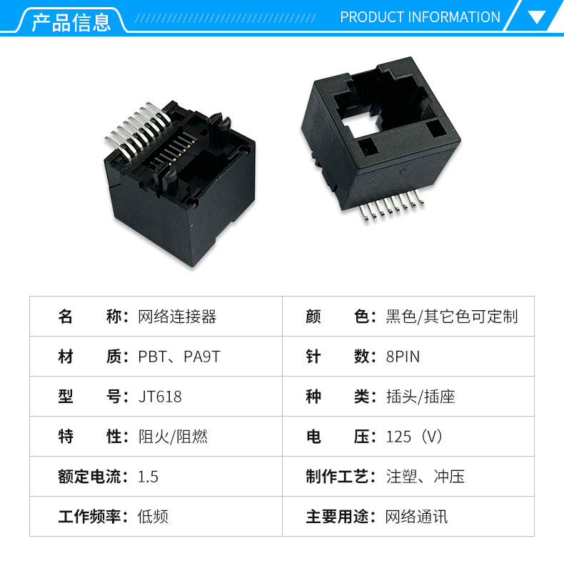本公司提供優(yōu)良的RJ11、RJ12電話插接件、RJ45網(wǎng)絡(luò)插接件,耐環(huán)境RJ45防水連接器,防水電連接器及其它精密連接器,產(chǎn)品應(yīng)用于網(wǎng)絡(luò)通訊(電腦主板,網(wǎng)絡(luò)交換機(jī),路由器,電信設(shè)備)、惡劣環(huán)境下數(shù)據(jù)傳輸與控制及電源信號(hào)傳輸與控制(戶外LED顯示屏、機(jī)器控制、工業(yè)程序控制等)