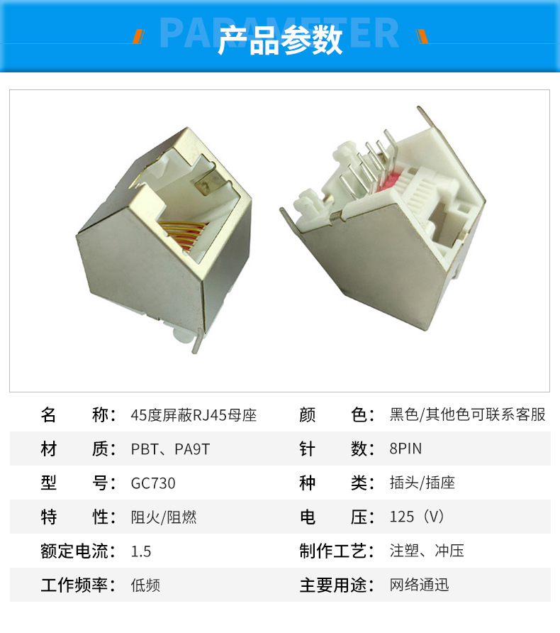 45度屏蔽RJ45母座