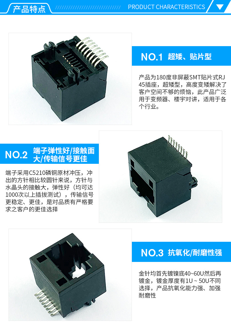 本公司提供優(yōu)良的RJ11、RJ12電話插接件、RJ45網(wǎng)絡(luò)插接件,耐環(huán)境RJ45防水連接器,防水電連接器及其它精密連接器,產(chǎn)品應(yīng)用于網(wǎng)絡(luò)通訊(電腦主板,網(wǎng)絡(luò)交換機(jī),路由器,電信設(shè)備)、惡劣環(huán)境下數(shù)據(jù)傳輸與控制及電源信號傳輸與控制(戶外LED顯示屏、機(jī)器控制、工業(yè)程序控制等)