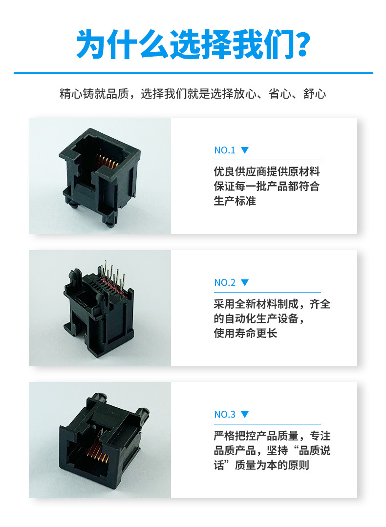 本公司提供優(yōu)良的RJ11、RJ12電話插接件、RJ45網(wǎng)絡插接件,耐環(huán)境RJ45防水連接器,防水電連接器及其它精密連接器,產(chǎn)品應用于網(wǎng)絡通訊(電腦主板,網(wǎng)絡交換機,路由器,電信設備)、惡劣環(huán)境下數(shù)據(jù)傳輸與控制及電源信號傳輸與控制(戶外LED顯示屏、機器控制、工業(yè)程序控制等)